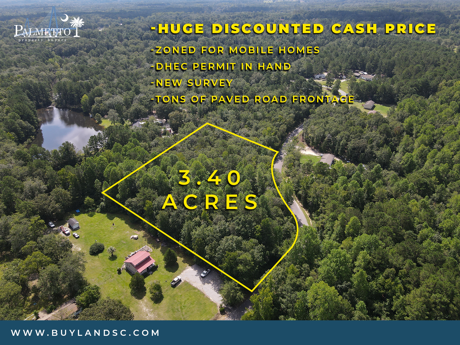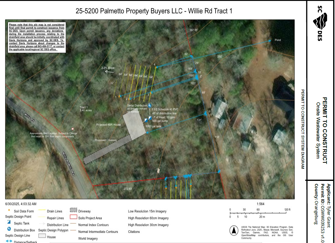 Description: Enjoy the space and beauty of this 3.40 acre tract on Willie Rd in Orangeburg County – prepped and ready for your dream home! It’s located just outside the town of Orangeburg. With extensive paved road frontage, a fresh survey, and a DHEC permit already in place for a conventional septic system, this property makes for an easy home site. There’s plenty of room for your homesite and yard, plus a creek/wetlands feature that adds a touch of nature for those who appreciate wildlife and the outdoors. Zoning allows for both mobile and stick-built homes.